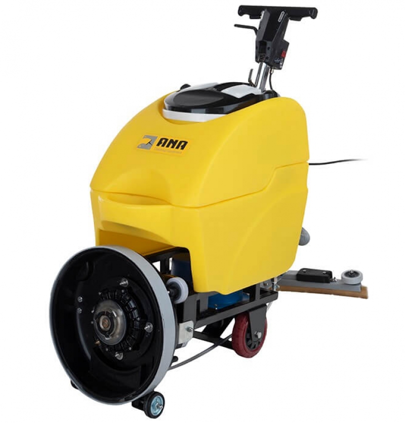 موتور برس گردان دستگاه اسکرابر باطری دار الکتروموتور dc وارداتی شرکت amer ایتالیا و موتور مکش آن الکتروموتور dc شرکت دمل اسلوونی ( AEG ) میباشد که هردو معتبرترین شرکت های تولید الکتروموتور در اروپا میباشند .مزیت این مدل ، کارکرد فوق العاده و طولانی مدت آن بدون بر جای گذاشتن آثاری از لکه ها و خیسی بر روی کف زمین میباشد که این امر باعث شد پس از تولید ، دستگاه های اسکرابر ایرانی آنا مورد استقبال بسیاری از هموطنان قرار گیرند . با حرکت رو به جلوی دستگاه ، ابتدا برس گردنده 40 سانتیمتری تعبیه شده در دستگاه کف زمین را شسته بعد از آن سیستم مکنده با تی لاستیکی هلالی 80 سانتیمتری واقع در انتهای دستگاه آب را از روی سطوح جمع آوری کرده سطح را خشک مینماید.