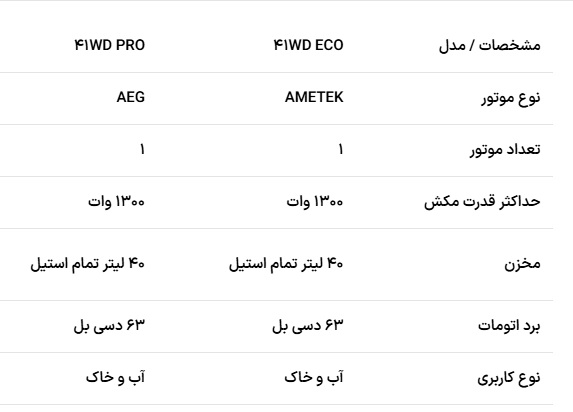 جاروبرقی یک موتوره آب و خاک آنا مدل 41WD یک عضو دسته جاروبرقی های نیمه صنعتی میباشد که از الکتروموتور سایکلون دو پروانه بهره مند است .