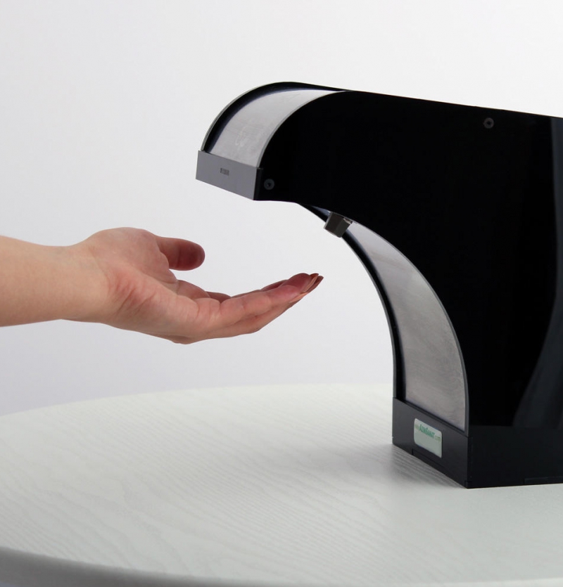 این دستگاه محلول ضد عفونی کننده را به صورت اسپری بر روی دست پاشش میکند و باعث میشود که مصرف کمتر شده و راحت تر عمل ضد عفونی کردن انجام شود.