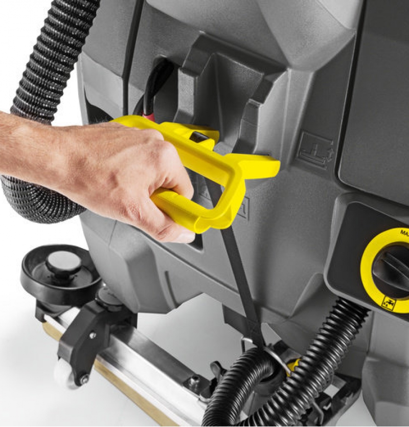 این مدل زمین شوی صنعتی دستی ویژگی های بسیار متفاوتی نسبت به مدل های مشابه خود دارد و دارای حجم مخازن نسبتا بزرگ تری در مقایسه با تمامی رقابی خود می باشد.درساخت بدنه و ساختمان تی این زمین شوی صنعتی از آلیاژهای جدید و بسیار مقاوم در برابر ضربه استفاده شده است و در عین حال وزن بسیار کمتری نسبت به رقبای خود دارا می باشد و این وزن کمتر باعث حرکت روبه جلوی بسیار راحت تر این زمین شوی صنعتی دستی شده است. در طراحی این دستگاه پیش بینی های بسیاری جهت نصب تجهیزات سنتی نظافت روی بدنه آن شده است و این زمین شوی صنعتی دستی در عین حال که نظافت مکانیزه را به نحو احسن انجام می دهد می تواند به عنوان یک ترولی نظافتی کامل نیز مورد استفاده قرار گیرد. این زمین شوی صنعتی دستی با برس استاندارد خود می تواند برای انواع سطوح از قبیل سنگ وسرامیک و بتن مسطح مورد استفاده قرار گیرد. از زمین شوی BD 50/60 در محیط های گوناگونی می توان استفاده نمود از جمله: بیمارستان ها و مراکز درمانی، مجتمع های تجاری و مسکونی و اداری، هتل ها، کارخانه ها، فروشگاه ها و هایپر مارکت های بزرگ و کوچک، دانشگاه ها و مراکز آموزشی، شرکت های خدماتی و بسیاری مکان های دیگر. این دستگاه از ویژگی ها و مزایایی متعددی برخوردار است از جمله : کنترل پنل ساده و کاربری بسیار آسان فرمان مدرن با طراحی ارگنومیک که کار با دستگاه را برای کاربر بسیار آسان می سازد پدالی برای جداسازی برس که عملیات جداسازی و شستشوی برس را بسیار بهداشتی تر و آسان تر می سازد برخورداری از اسپلش گارد که از پاشش آب به محیط اطراف در حین کار ممانعت می نماید مخزن آب کثیف جدا شونده که سبب می شود عملیات شستشوی مخزن اب کثیف را با سهولت و سادگی به انجام رسانید
