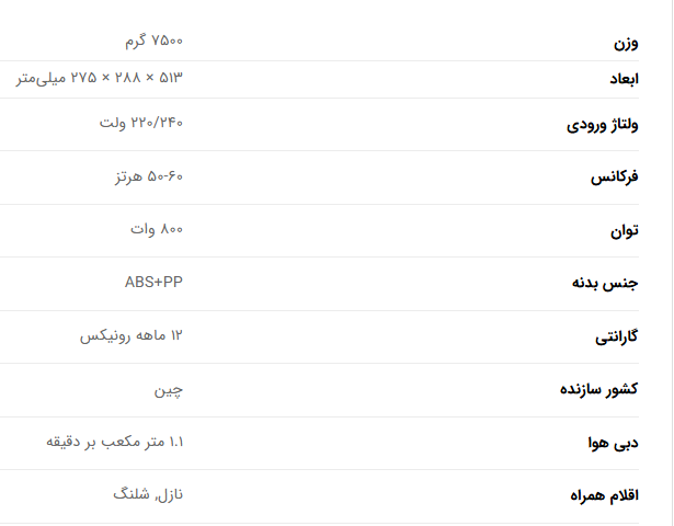 – دارای قدرت مکش بالا و میزان نویز کم به طوری که غذاهای چسبنده مانند ژله و تخم مرغ و همچنین موی حیوانات را تمیز میکند.