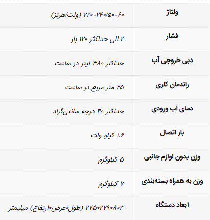 توان 1.6 کیلووات با مصرف آب 380 لیتر در ساعت