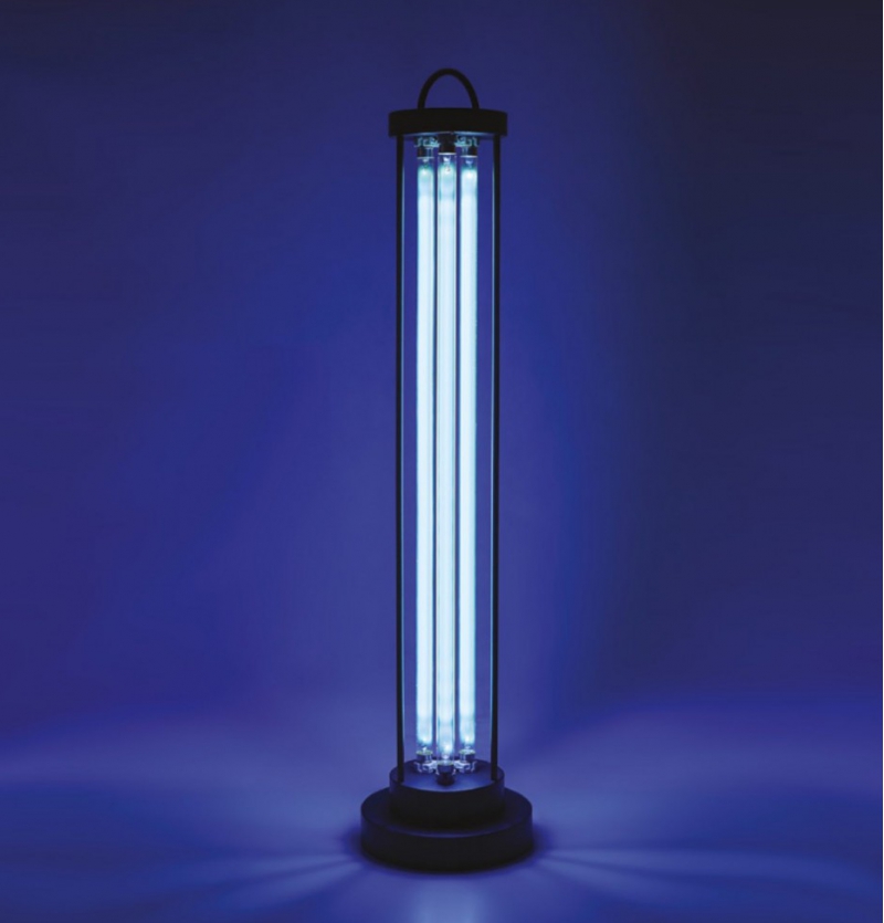 این دستگاه دارای 3 عدد لامپ UV با کیفیت است که مصرف برق آن 90 وات در ساعت می باشد و دستگاه به صورت ایستاده و فضای کمی را اشغال میکند ابعاد 25X25 و ارتفاع 110 سانتیمتر است. طراحی به صورتی که است که در وسط محیط قرارگرفته و به صورت 360 درجه محیط را پاکسازی می کند.