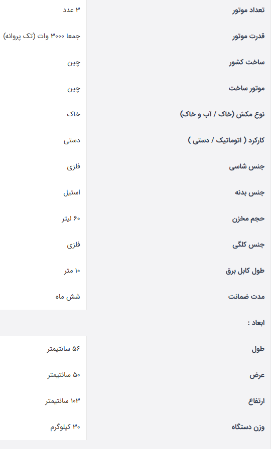 ظرفیت مخزن این جاروبرقی 60 لیتر می باشد.
