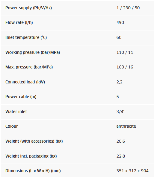 ویژگی های بارز کارواش فشارقوی 160 بار کارچر مدل HD 5/11 P: